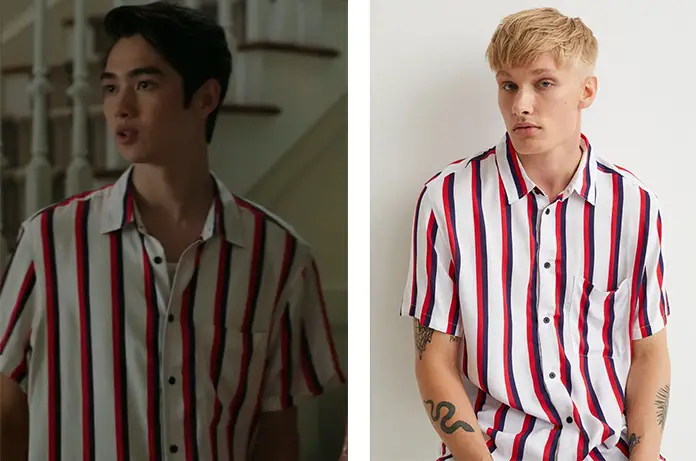 Steven (Sean Kaufman) aperçoit la nouvelle copine de son père dans The Summer I turned pretty 4. Il porte une chemise à rayures que l’on trouvait ici