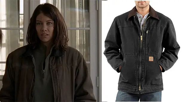 le notamment sur Netflix), elle porte une veste Carhartt, disponible en plein de couleurs.