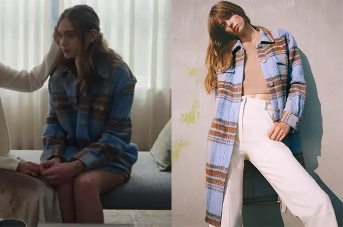 Dans The Watcher 1×05, Ellie (Isabel Gravitt) porte cette veste chemise avec un motif style plaid. On la trouvait ici, mais elle semble sold out.