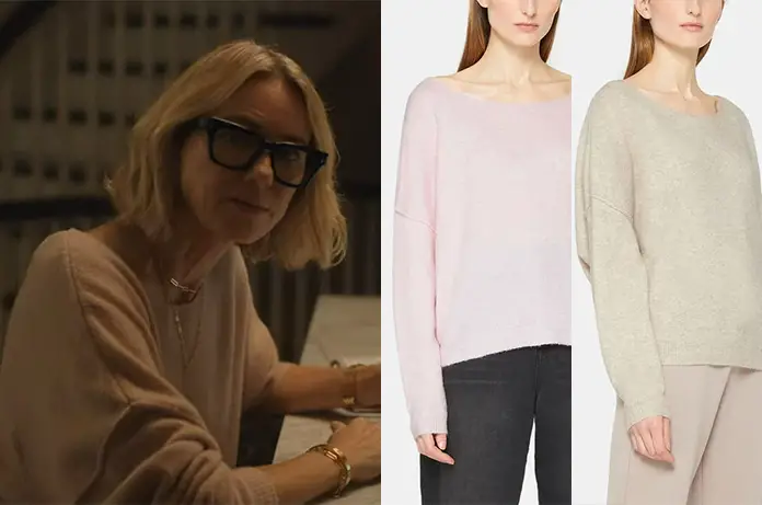 Nora (Naomi Watts) porte ce pull rose clair dans The Watcher 1×02. On le trouve en d’autres coloris, comme le sable, illustré ci-dessus.