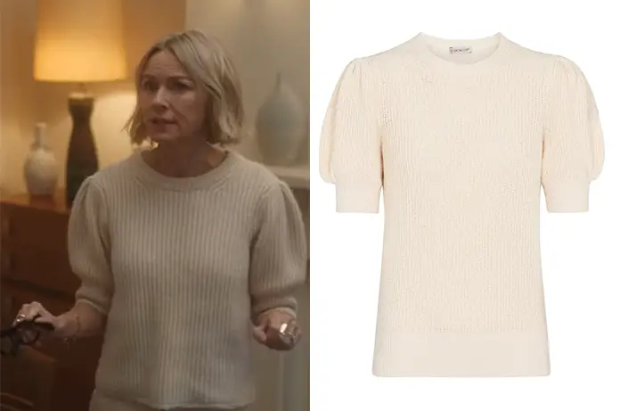 FashionFringues de sériesWatcher (The) THE WATCHER : Nora’s white sweater with puffed short sleeves in S1E07 Par FDS - 24 octobre 2022 0 806 FacebookTwitterPinterest Nora (Naomi Watts) porte ce pull blanc côtelé à manches courtes bouffantes, dans The Watcher 1×07. On le trouve ici J’aime ça :J’aime chargement…