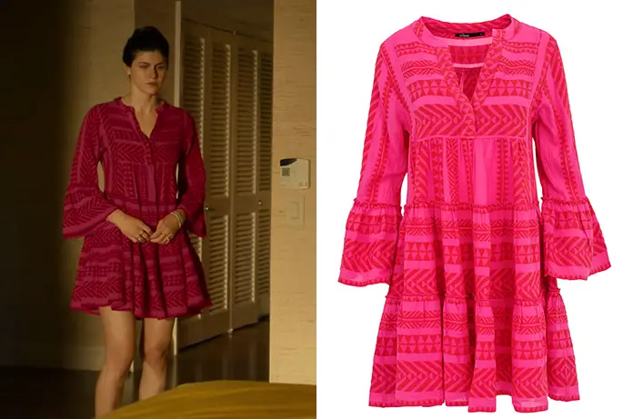 Rachel (Alexandra Daddario) portait cette mini robe fuchsia dans l’épisode final de The White Lotus.