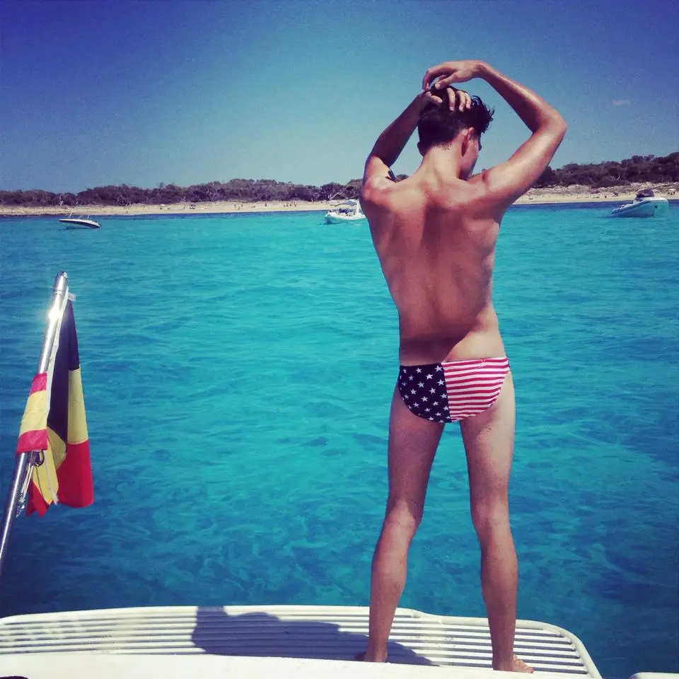 On vous avait montré l’attachement de Cesar Casier (Ceesie pour les intimes) pour son pays natal, la Belgique, mais le top model a aussi un pays de cœur, les États-Unis. Et donc pendant ses vacances à Ibiza, il arbore fièrement l’US flag !