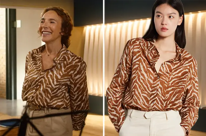 Fringues de sériesTout pour la lumière TOUT POUR LA LUMIÈRE : la chemise imprimé animalier de Florence Par FDS - 4 juillet 2025 0 410 FacebookTwitterPinterest à g. capture d’écran « Tout pour la lumière » ép. 13, source RTL Play Florence (Isabel Otero) porte la chemise avec imprimé animalier, qu’on retrouve dans le générique, dans Tout pour la lumière épisode 14. On la trouve ici à prix promo, ou ici Cheffe costumière : Chantal Castelli J’aime ça :J’aime chargement…