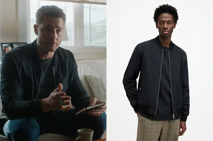 Colter Shaw (Justin Hartley) porte ce bomber réversible noir pour mener sa deuxième enquête dans Tracker 1×01, sur Netflix.