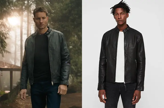 Pour la fin de l’épisode, Colter a endossé une veste en cuir d’agneau, style biker, que l’on trouve ici
