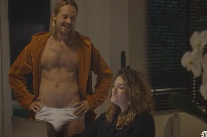 Vince (Benjamin Ramon) porte un slip du plus bel effet dans Trentenaires 2×05.
