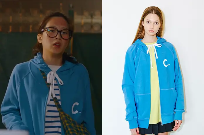 Ju-Kyung (Moon Ga-Yung) va au rendez-vous, dans True Beauty 1×02, avec ce sweat à capuche bleu, de la marque Clove. On le trouvait sur ce site coréen.