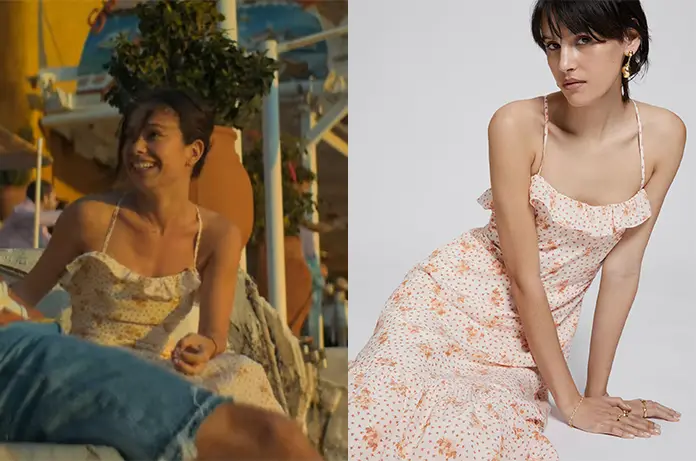 A la fin de l’épisode 3 d’Un conte parfait (Un cuento perfecto), Margot (Anna Castillo) est vue avec une longe robe à bretelles, avec des fleurs jaunes. Une robe qui sent l’été romantique.