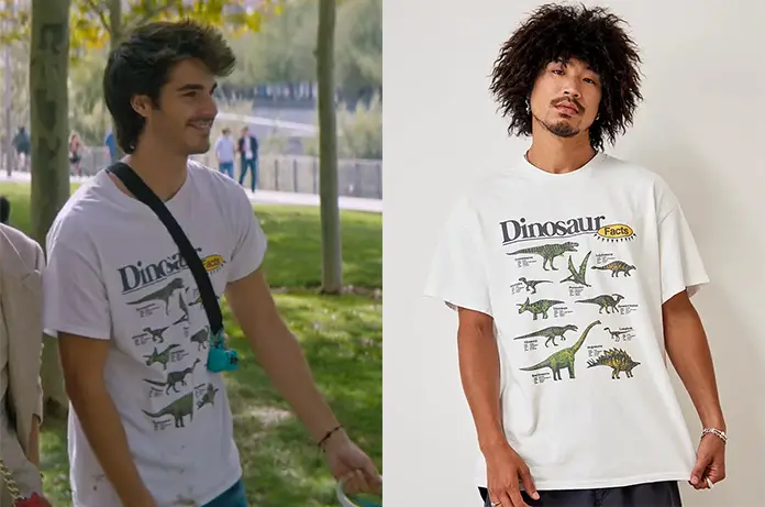 David (Álvaro Mel) porte ce t-shirt « dinosaur » dans le deuxième épisode d’Un conte parfait (Un cuento perfecto)