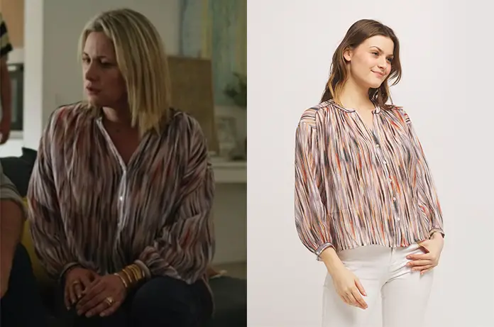 Léonor (Maeva Pasquali) pousse cette blouse à lignes floues dans Un si grand soleil épisode 961 (France 2).