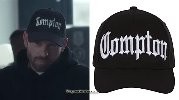DJ Sno (Frank Gastambide) porte une casquette avec l’inscription Compton dans Validé S1E02. On la trouve ici