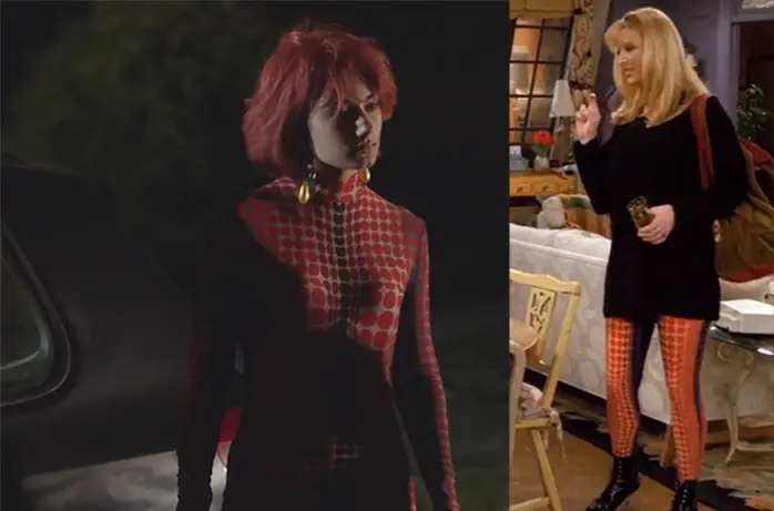 On vous parlait récemment de la splendide tenue Jean-Paul Gaultier vue sur Victoria Abril et Elisa Ezzedine dans Demain nous appartient. Katherine du compte Cinema Spells que je vous recommande pour acheterdes vêtements vus dans des séries plus anciennes, me rappelait que cette tenue était également portée par Fran (Fran Drescher) dans une Nounou d’enfer (The Nanny) et par Phoebe (Lisa Kudrow) dans Friends.