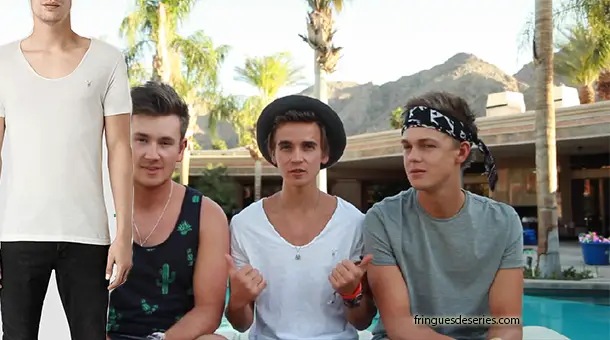 Et on retrouve Joe Sugg, Caspar et Oli White au bord d’une piscine californienne : un nouveau jeu. La bouche remplie de marshmallows, il faut essayer de faire deviner une célébrité.