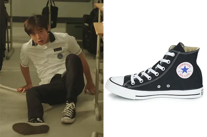 Yeon Si-eun (Park Ji-hoon 박지훈) porte des baskets noires au style plutôt reconnaissable dans Weak Hero Class 1 (약한영웅) épisode 1.