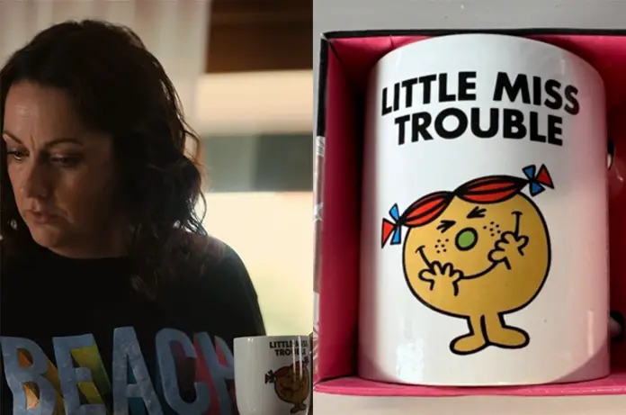 Liv (Celeste Barber) boit son thé dans un mug Little Miss Trouble dans Wellmania 1×05, sur Netflix.