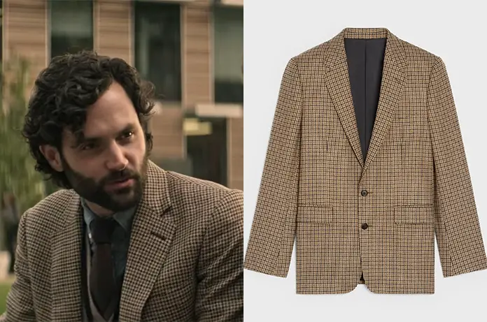 Jonathan (Penn Badgley) se fait remarquer dans ce blazer marron/camel dans la 4e saison de You, sur Netflix.