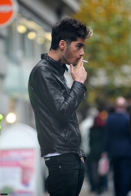 Zayn Malik, dans les rue de Londres ce 26 octobre, la clope au bec, et portant un jeans noir de la marque Dr. Denim